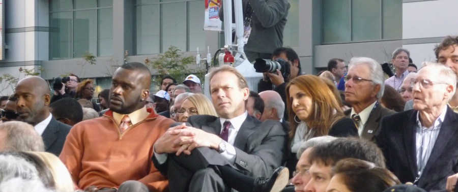 Worthy, Shaq, Rambis, Sharman and Gasol admire West
