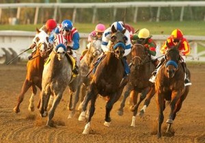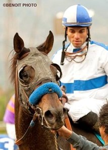 NO, not that type of cougar! This is the time of year that always brings back special memories of my favorite Santa Anita race ever (at least until Zenyatta’s Breeder’s Cup win). Only a few months after the man who introduced the sport of kings to me (my father) had died, the 1973 version of the Big Cap was run and the field included my all-time favorite So-Cal horse Cougar II (under Laffit Pincay, Jr.). If you click on the painting to the right, you’ll get a clearer look at how beautiful Cougar was with his always perfectly coiffed long full tail and mane that usually seemed as if he’d just jogged in from seeing his favorite Beverly Hills stylist. Trainer Charlie Whittingham had brought “The Big Cat” back off of a long layoff and some solid works and the horse was ready to roll; beating a game Kennedy Road after a long stretch drive, a photo finish and steward’s inquiry by a whisker! That $50 win ticket (the most costly for me up to that race) had my palms sweating while waiting seemingly forever for the stewards to finally give Cougar, ‘The Bald Eagle’ (his 8th Big Cap title), and I a win that is forever etched in my mind.