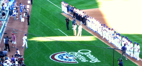 But before any first pitches of the season, I had to hustle down to the Dodgers’ locker room to get you some player’s thoughts and that’s where I ran into former L.A. first baseman Steve Garvey who still works for the club. The irony of seeing ‘The Garv’ here was that we had both just played in the Kraft Nabisco Pro-ams the last 2 days, so it was time to get him to say a few words on both golf and baseball…