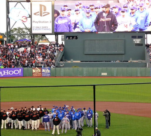 We all the know the sad story about 42 year old Santa Cruz paramedic Bryan Stow and the horror he went through after the season opener at Dodger Stadium when Clayton Kershaw outdueled the Giants. Well AT&T Park was the place where the home fans got to send their own tributes to Stowe and donated over $58,000 for his medical bills and family. And there was also a ballgame in which Kershaw once again stymied the Giants for a 6-1 win…but this one was all about the fans and how they behaved like respectable adults after a moving pregame ceremony. Both clubs gathered at the mound with San Francisco’s Jeremy Affelt speaking from the heart on how this is a great rivalry and should stay that way without anymore violence and then he was followed by more nice words from Dodgers infielder Jamey Carroll.