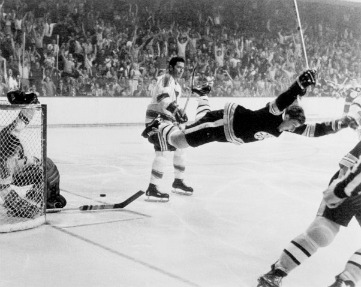 Certainly congrats to the Bruins fans who’ve waited 39 verrrry long years since the grand old days of Bobby Orr (as in the famous 1970 Cup winning picture above) to enjoy another Stanley Cup, while Canucks fans were one game shy of getting a first cup in their 40th NHL season. And to think about the celebrating that would’ve gone on in all of B.C. and many other parts of OH Canada? But instead, the Canadian drought has stretched to 17 years since Montreal beat my L.A. Kings and ‘The Great One’ thanks to some clutch overtime goals, Patrick Roy standing on his crown, and a McSorley curved stick for the ages.