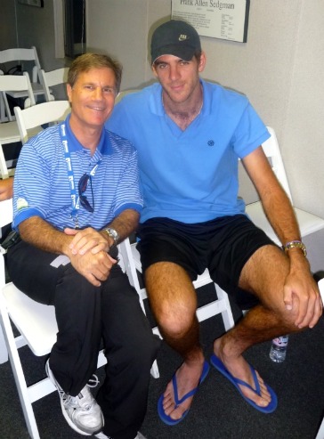 The Farmers Classic is moving into it’s 3rd day of tennis here at UCLA and Wednesday’s action will be highlighted by the return of 2008 tournament champion Juan Martin del Potro. The 2009 US Open Champion will play during the evening match against James Blake who was a first round straight sets winner over German Michael Berrer. It was nice to sit down with the returning del Potro who is just about fully healed from wrist surgery and feeling ready to become a 2-time L.A. champ.