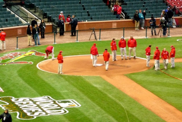 And who knows when or if I’d ever get this opportunity again? So here I am in very cold St. Louis where the windchill dipped during tonight’s Series opener to 41 degrees. Fortunately I was prepared by taking my true winter coat on the trip and all is good (I think?). Hey if some of the players can play sleeveless out there, it’s the least I can do…right?