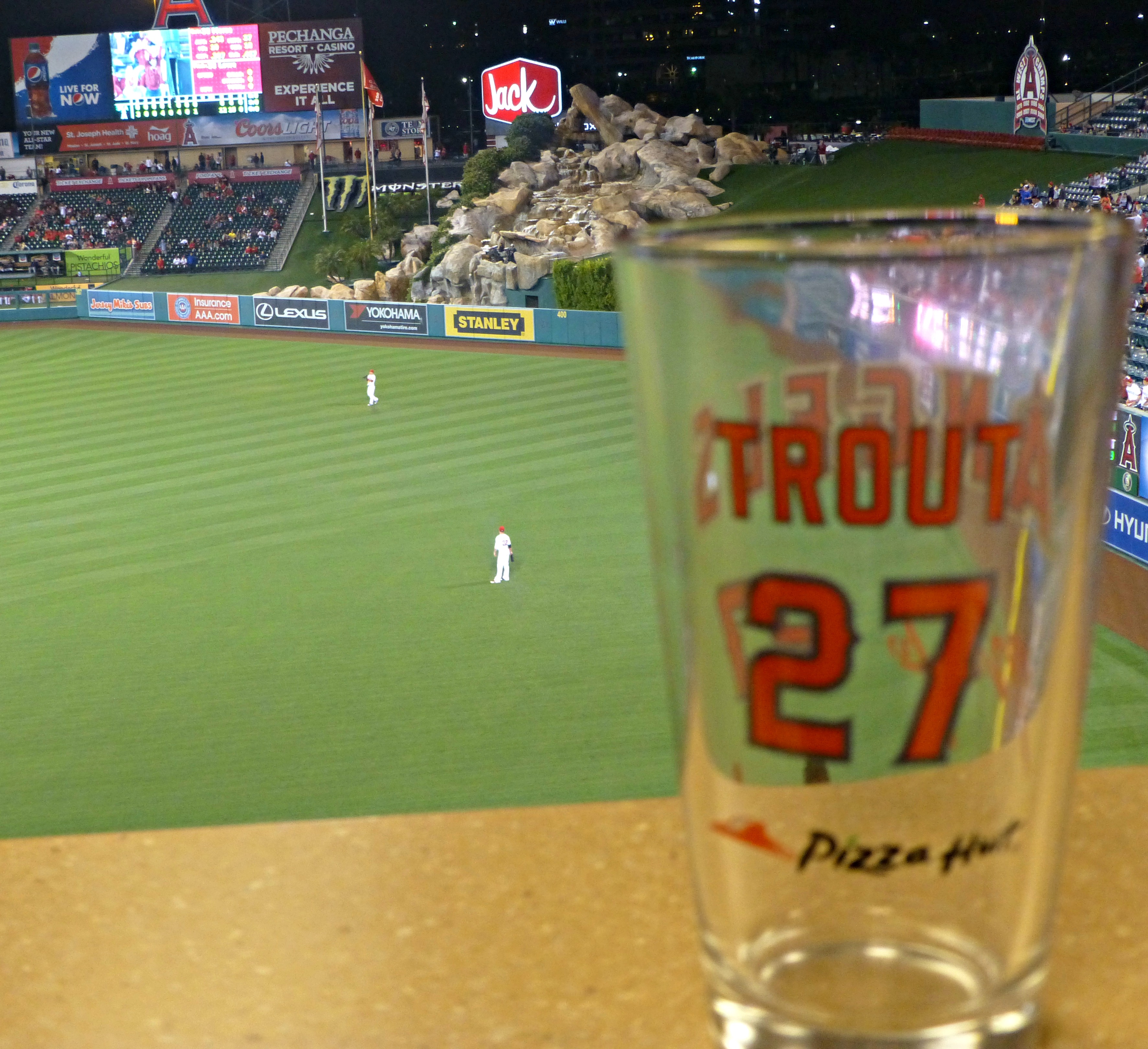 The Angels bats have suddenly awakened and they belted their usual whipping boys the Seattle Mariners 12-0 on Mike Trout pint glass night. And did Trout’s glass runneth over hitting for the cycle for the first time in his life and the 7th overall in Angels history and he did it with an 8th inning homerun that he describes nicely in our postgame chat below. The Angels are now an amazing 78-41 against the M’s since 2007 the best record by one team over another during that stretch.