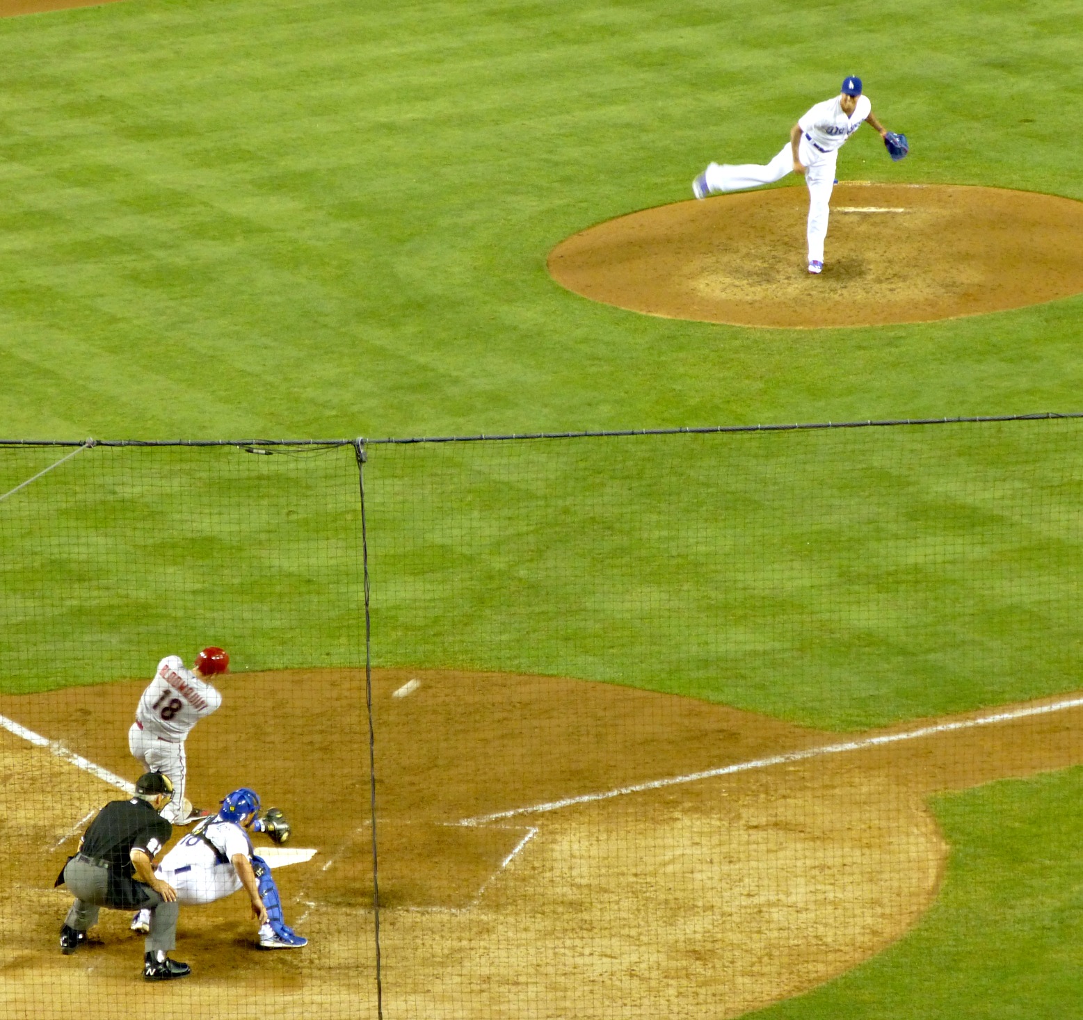 Puig went 3 for 4 on the night (improving his average to a keen .500) in his first stint as the clean-up batter after leading off in his first 7 big league games. And his last single of the night loaded the bases in the 8th inning before one of the worst calls you’ll ever see. Jerry Hairston, Jr. then grounded into a double play to third base although being safe from here to eternity. But first place ump Clint Fagan must’ve been watching a good looker in the front row instead of Hairston’s foot obviously touching the bag ahead of the throw. The replay clearly showed why some kind of instant replay has to be involved in a play like that from a credibility standpoint! And then Andre Ethier flied out to center to end an inning that turned into an unfortunate chance to build on the Dodger lead.